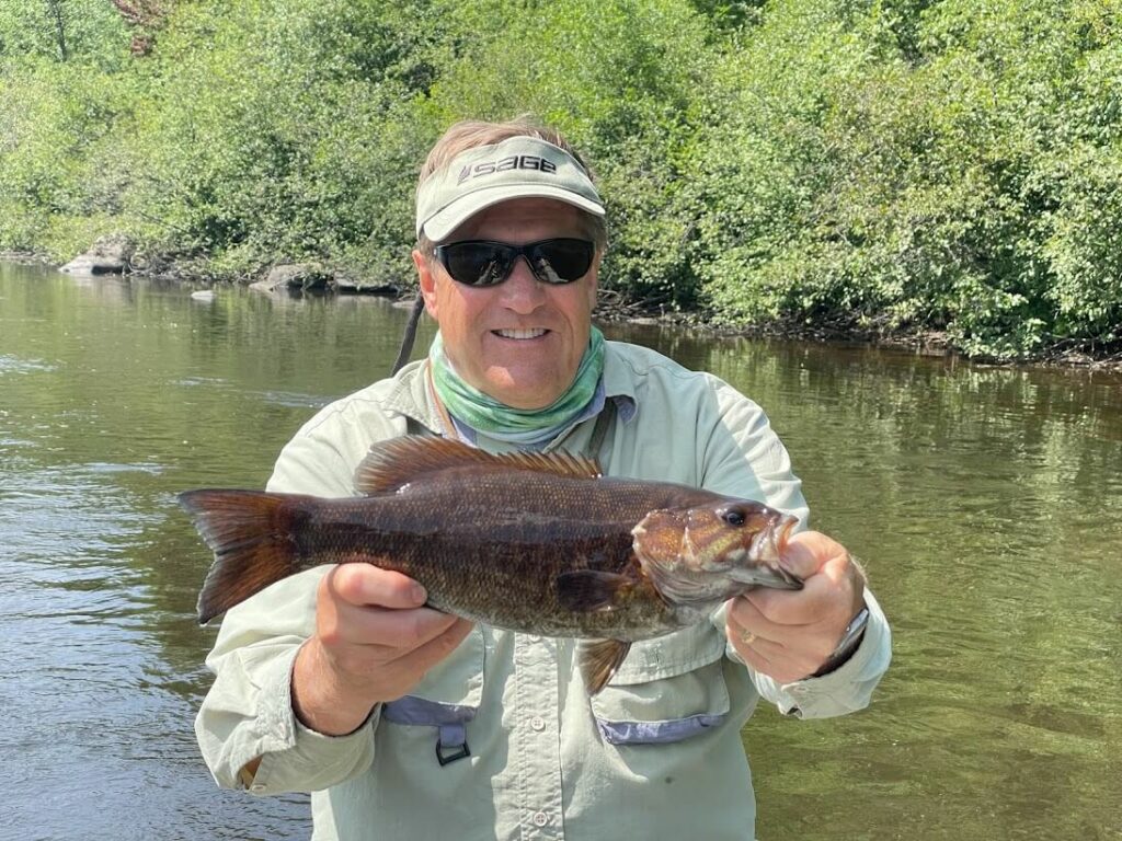 During my two days of fishing with Abe for smallmouth we cast streamers, diving frogs and poppers from his drift boat, but found our greatest success throwing streamers with a 7-weight outfit against the banks and around the river’s many boulders and rock formations.